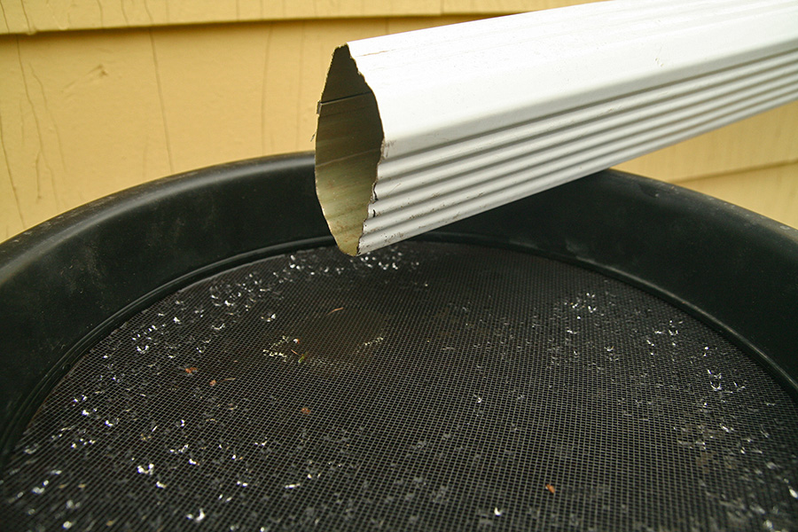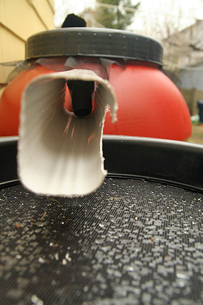 the way the rain water plays on the barrel screens almost seem like pixel drawings. the screen is there for many reasons: it allows the water to pour through, it traps any debris, and it keeps the mosquitoes out. i also like the fact that it's see-through and i can look directly into the barrels to see if they're full or not.