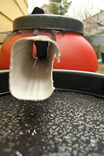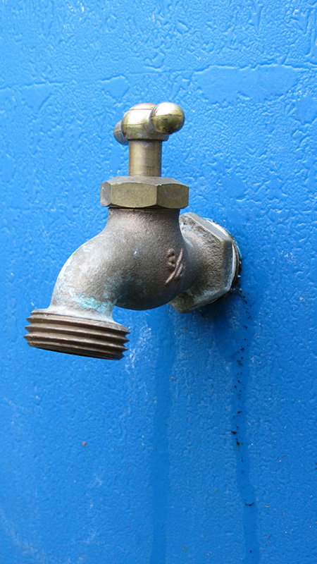 the blue rain barrel is leaking! from the base of the spigot. it must've gotten knocked around either during storage or transport, and now the watertight seal is broken. the only way to fix it is to drain the barrel and seal the edge of the hole with silicone caulk. since the blue barrel doesn't have a removable lid, there's no way to get inside to seal it from the back end as well. currently the blue barrel is about half way full of water, but my father said it was much higher this morning, and already a significant amount has trickled out.