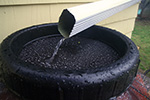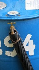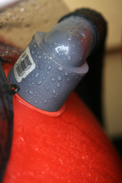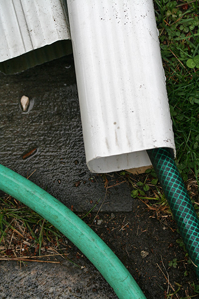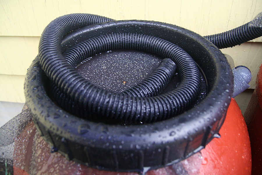 the double barrels was inching close to capacity as well. the second backup barrel still had some room but moments later it filled up and water became to come out from the overflow, funneled to the center of the yard through the sump pump hose. the first barrel attached to the second barrel through a coiled length of sump pump hose, but later we switched to just a short segment of downspout for a more direct channeling.