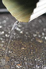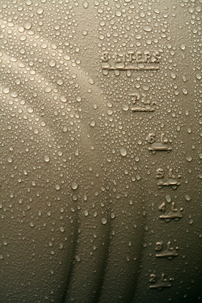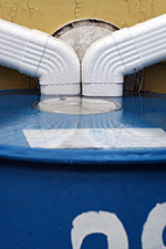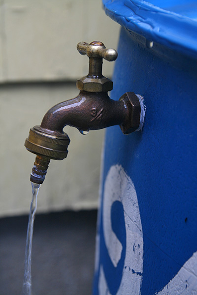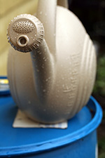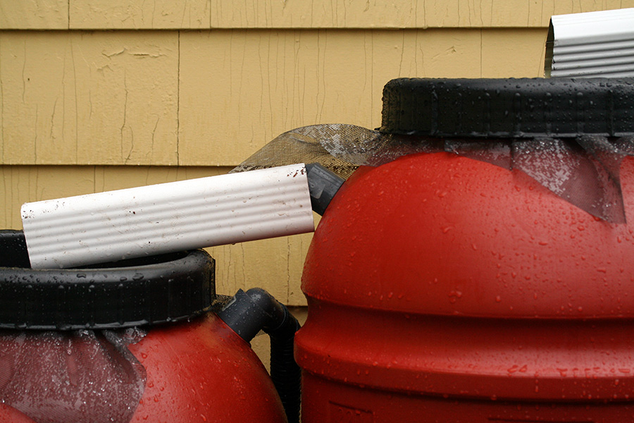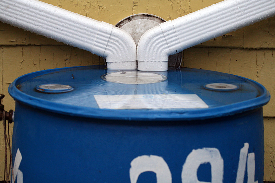 i'd wanted to be in belmont on a seriously rainy day in order to see the water barrels in action. i was not disappointed. the blue barrel was already at capacity and water was pouring from the overflow like a stream. it wasn't coming out fast enough because the top of the barrel was flooded as well, the water dripping behind the barrel.