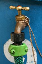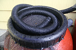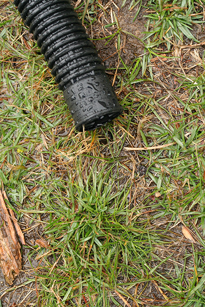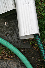 first i attached a garden hose to the overflow spigot. it was way too long and the flow became blocked. next i found a length of shopvac hose and tied it to the spigot with strings. the far end of the hose fed into a serious of gutter downspouts directed away from the house. that worked okay, until i found a shorter length of garden hose (6ft) and used that instead.