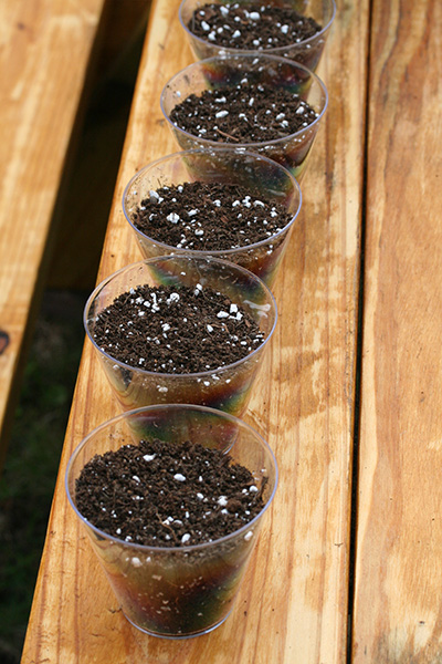 1 peat moss and perlite we had; the missing ingredient was good compost. we have a compost bin but the compost inside are still mostly large pieces. we decided to sift it through a screen over a bucket. after several minutes of shaking, we only managed to get a fistful of fine compost. we ended up digging from the soil beneath one of the evergreen shrubs by the eastern side of the house. i knew a long time ago that the soil underneath was a natural source of very excellent soft compost.