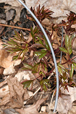 at first i thought it was a bleeding heart, then maybe a celandine, but now i think it's a transplanted wood poppy. i probably have some records but i'm too lazy to look it up. there are already flower buds so in a few days i should know for sure. wood poppies and celandines are close cousins (poppy family) so that's why the leaves look so similar.
