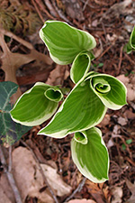 the white-edged hostas are the first ones to unfurl; i'm still waiting for the blue-green hostas, which are much older and bigger. hostas have to be protected by cages because they grow in an area of the yard where hailey occasionally crash through in pursuit of squirrels. even with cages, sometimes the dog will trample through them anyway, too absorbed the chase to avoid obstacles.