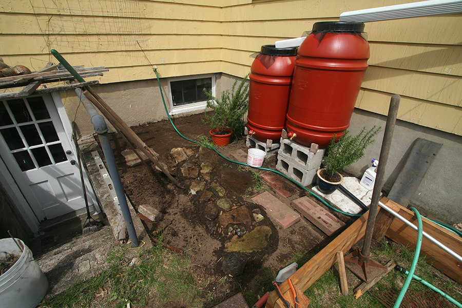 my father was busy converting the area by the spigot back into non-garden space. he working on the theory that they've been experiencing more periodic basement flooding because we've been planting right next to the house. that's basically the reason why we're doing raised beds this season. but he also wants to edge the house with plastic sheets and either put mulch or gravel on top of that. i don't think it'll do anything to prevent the flooding, and in fact, i believe it'll make it worse, because rain will pool on the plastic sheets and any water below ground won't be able to evaporate through that barrier.