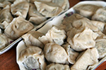 my mother volunteered to work at the cafe so my father could be home today. after figuring out our course of action, my father suggested we eat lunch first before getting started. he cooked up some dill-flavored chinese dumplings.