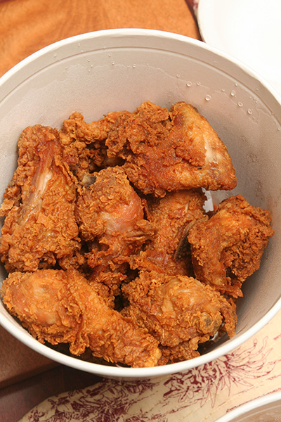 we were so busy with our projects that my mother had to call to remind us to pick her up from the cafe. my sister was the only person available so she left. on the way back, they take a detour to the allston-brighton KFC and get two buckets of fried chicken.