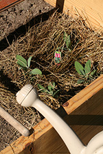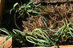 it was mostly stalks and roots. i moved it to the corner of raised bed 2 (RB2), after i portioned a 2x2' square parcel. likewise i did the same for my sister, giving her another 2x2' corner to plant the rest of her sage. since these weren't seedlings, i finally got a chance to use some of that marsh grass, taking off the tarp and pulling out a few fistful at a time to use as mulch. the grass bale was a little wet in the center (from being left outside, even though i covered it up) but not too bad.