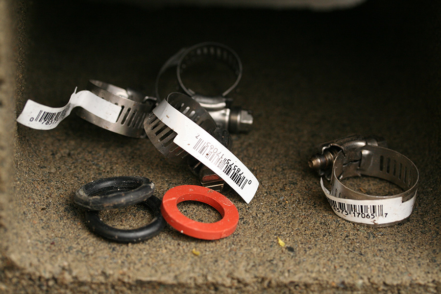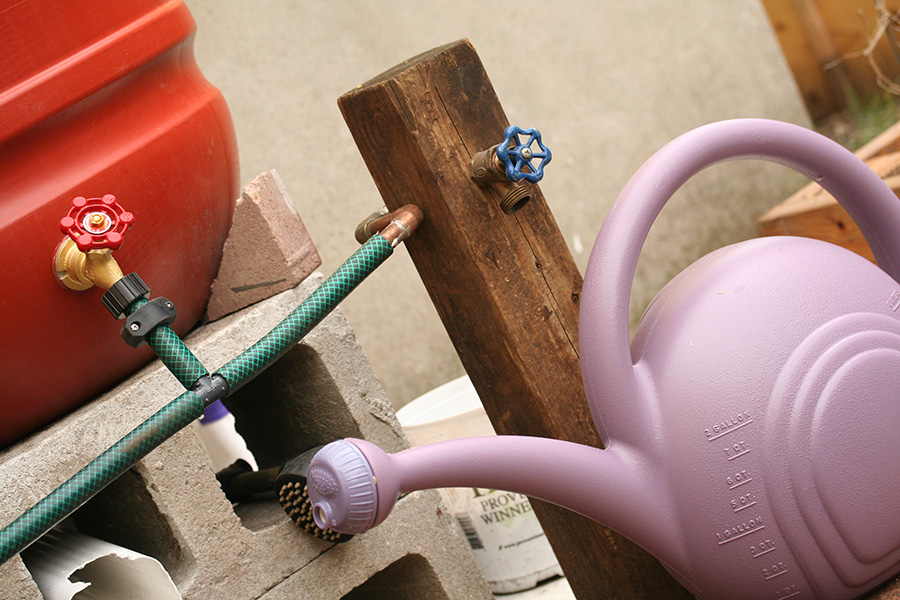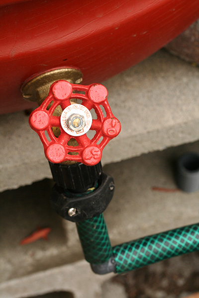 i tipped the black rain barrel slightly over to pour out as much water as possible. tomorrow i'll come back (when it's dried) to add more silicone caulk. if that still doesn't work we might remove the brass spigot and turn this barrel into a DIY compost tumbler.