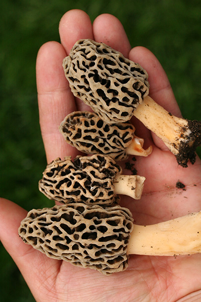 while weeding out dandelions around the lawn, i came around some more morels in the same place i saw them last year. this time i found enough for a single serving.