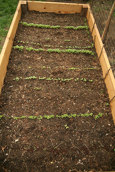 some observations: i wonder if arugula and radishes are somehow related? their seedlings look so much alike (although on closer inspection, radish leaves have veins; arugula does not). i still regret not staggering the seeds in RB1: now everything will be mature at the same time so suddenly we'll have so much leafy greens we won't know what to do with them. the beet seedlings are new; they do look beety, with a magenta color around the leaf margins. there are also a lot of weeds that are now also poking up from RB1 soil. that is what happens when you don't roll your own sterile growth medium and just reuse the dirt that's already there. i think a great deal of the weeds are purslane seedlings, which are actually edible but i've never tried it. i'm hoping the vegetable stuff will grow fast enough that i can begin mulching with the marsh grass, thereby covering up a lot of the prospective weeds.