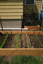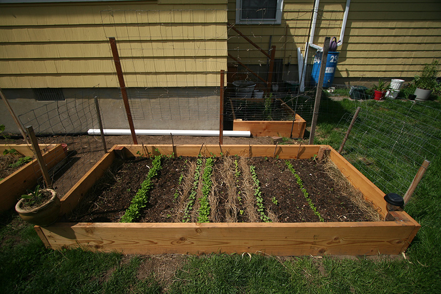 the biggest thing i did today was erecting a higher trellis for RB1. it's not the best design since there's a 2 feet gap between the actual bed and the trellis. those sugar snap peas will have to be helped in bridging that divide. the space is really there so i can access the back of the raised bed since the frame is wide enough (4 feet) that i can't easily reach over to the other side.
