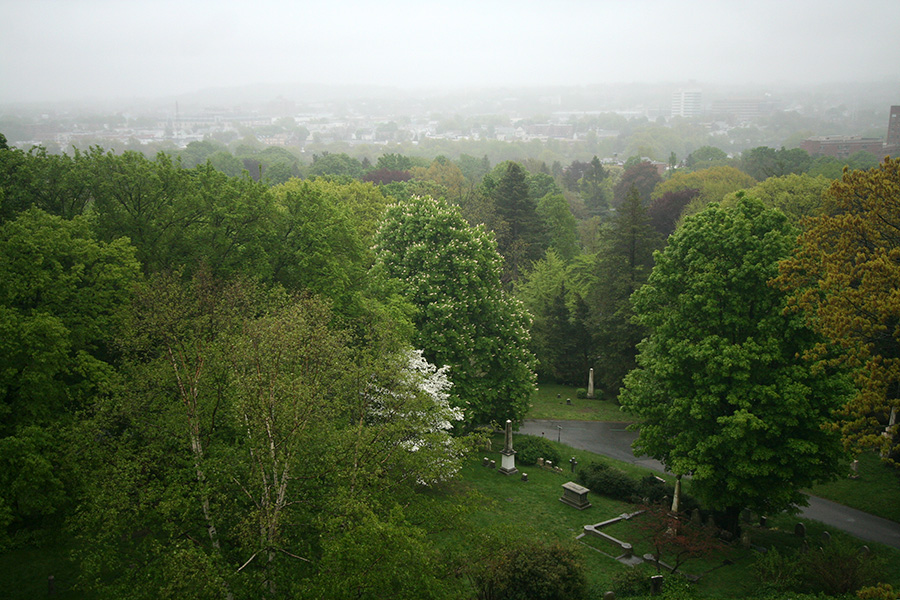 since the tower was nearby, we decided to climb it. from on top we couldn't see boston due to the thick fog. the farthest thing i could spot was the steeple of harvard's memorial hall. i kept wiping off the mist sticking to the filter of my camera lens.