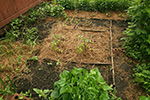 the corner garden also sits next to the compost bin. i turned the content today. it's mostly grass clippings with a bit of shredded newspaper. it smelled absolutely horrible, like the worst public toilet in china, reeking of rot and ammonia. it needs more dry material to counteract the nitrogen surplus.