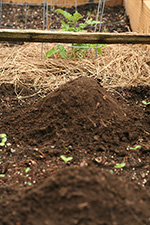 i redid my cucumber/squash mounds since more than 2 weeks have gone by and nothing has emerged except for a single frail cucumber seedling. even when i dug into the mound i couldn't find anything germinating, except for one stunted cocozelle squash. hopefully the weather will be sunnier within the next few days to properly germinate these seeds. they supposed to emerge in 5-10 days.