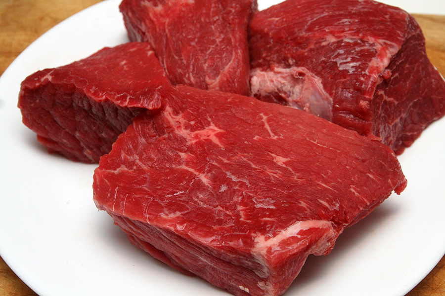 after letting the meat harden in the freezer, it was time to cut the strips. bottom round rump roast is the wrong kind of meat to use for making beef jerky. the problem is that it's too thick. instead of strips, i end up slicing chunky planks. it's also not lean enough. i had to trim a bit of fat and skin hidden underneath the roast. there's also some marbling, which is usually a good thing, but fat on jerky makes them spoil faster.