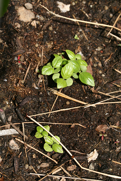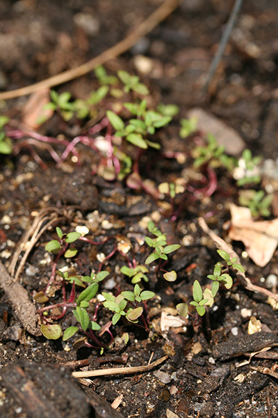 some wild tomato seedlings have sprouted in RB0, offspring of some discarded fruit from last season. i had some last year, on the western side of the house. they produced tomatoes but they were very small. not sure whether it was genetics or just i didn't take very good care of them. these wild tomatoes are very hardy because they survived the winter outdoor as seeds and have managed to germinate all on their own. i usually let them grow out of admiration.