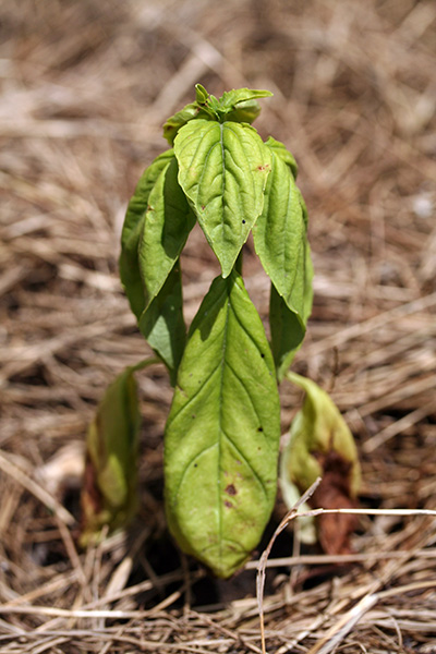 the pair of indoor-started morning glories suffered some cold/grey weather damage, but they're making a comeback. already one of them is making flower buds. these i won't pinch off because the whole purpose of growing morning glories is for their flowers.