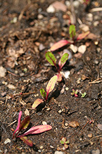 my father has been taking care of the garden ever since he came back from china. it must've been a surprise for him when he returned and saw that everything had been planted. i didn't even see it at first, but he noticed that some of the radishes are now ready to eat. you can tell because the round red bulbs are poking out of the ground. he pulled out a few about the size of large jawbreakers (no more than an inch across). i tried one, they're very sweet and juicy with a pungent characteristic spiciness. this is only our first season raising radishes, but they're so easy to grow, it's a shame we haven't been doing it sooner.