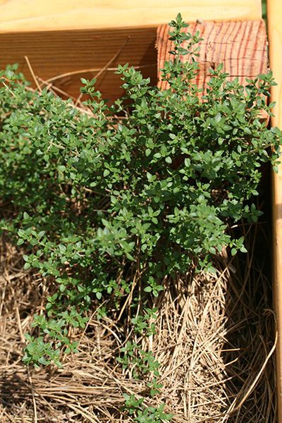 i haven't been paying attention to the thyme, but it's doing surprisingly well too. this was a plant we left outdoors during the winter, and was reduced to nothing more than a few twigs and some yellowing leaves. now it's grown to become a little bush, and there's still a whole summer to get bigger.