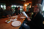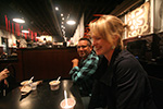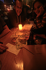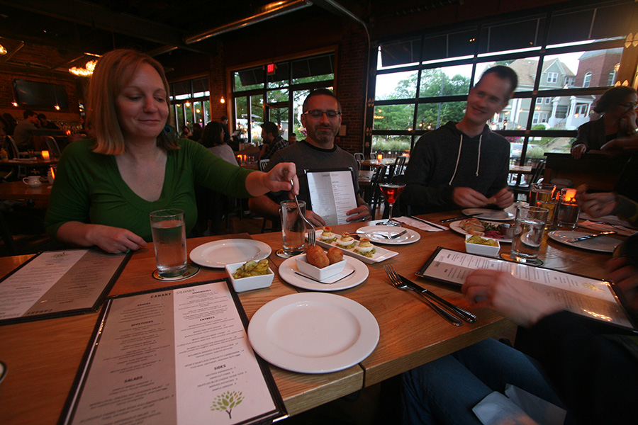 i wanted to ride the motorcycle but i didn't want to risk getting caught in the rain that was due to arrive later in the evening. according to google map, the fastest MBTA route would still take an hour. i made plans to leave early, but lost track of time and suddenly realized close to 6:00 that i had to get going. it was a race against time, one that i wasn't winning. at porter square a train had just left when i got there. the same happened as well when i got to the orange line at downtown crossing. despite the setbacks, i managed to get to canary square right on time. carl came out to greet me while i was taking a photo of the restaurant from the outside. they'd gotten a table but nobody else had arrived yet. i met hilary inside. soon ed and michaela showed up, followed finally by eliza.