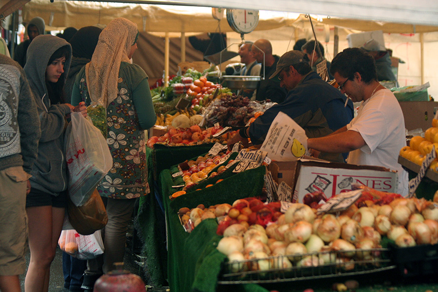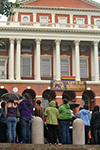 from there i snaked down to washington street and arrived at haymarket to get some cheap produce. there's a bit more selection since my last visit. i saw a lot of lettuce (romaine, iceberg) and cherries are now in season. i ended up buying some ginger ($2), jalapeño peppers ($1), a pineapple $2), and 2 bags of cherries ($5, i think about 4 lbs. worth). i took a quick peek at city hall, where there was a free pride concert and various vendors set up around the plaza.
