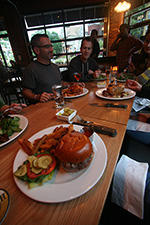 the waiter asked us if we wanted to move to a different table. the alternative was a better choice, with eliza sitting in the middle so everyone could have a chance to talk with her. it's been more than a year since i last saw eliza, when she was back in boston briefly may of last year to sell off her JP condo. the food at canary square was a little fancy for my taste. carl, who's been here a few times with hilary, was telling us about the popcorn assortment and the fried twinkie, neither of which were on the menu anymore. i ended up getting the wood grilled burger ($11) and shared some appetizers with carl and hilary (deviled eggs and truffle blue cheese tater tots).
