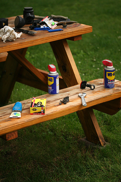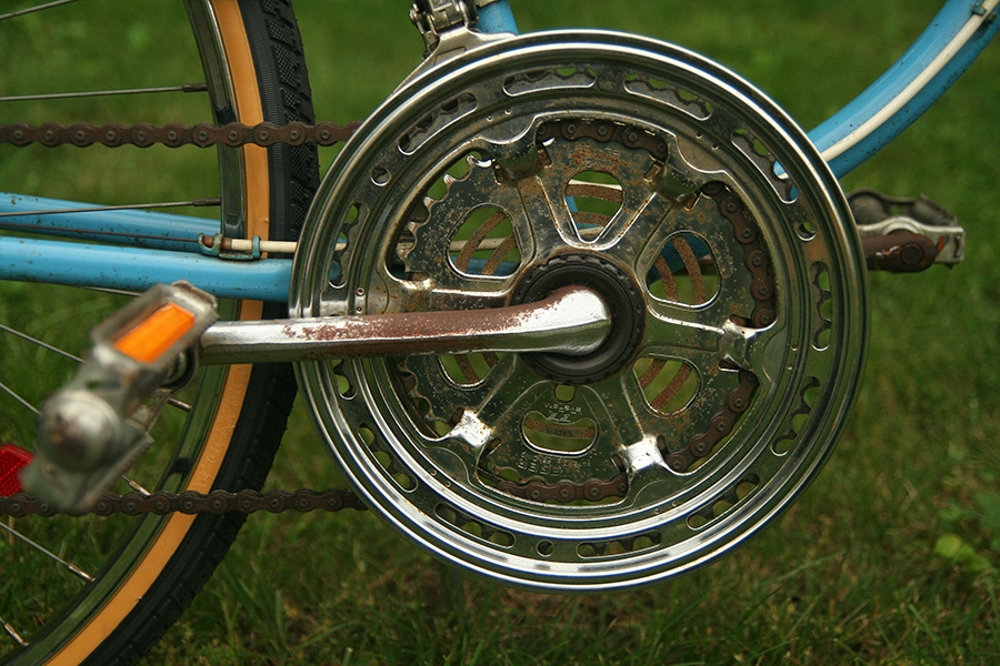 in the afternoon i was out in the backyard working on the ross 10-speed. the sun came out for a little bit and it was actually a fairly nice day. my father came out and helped me clean off the rust with some WD-40 and steel wool.