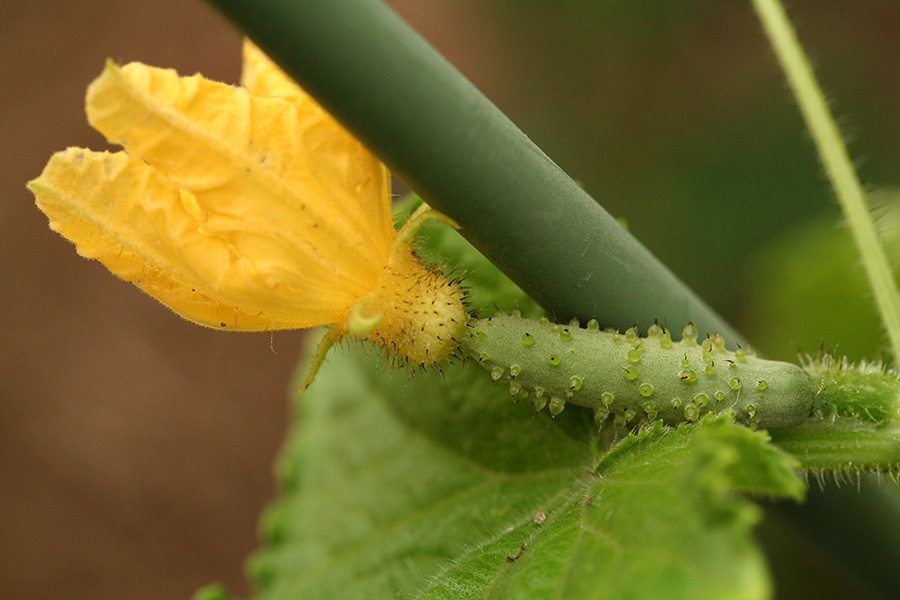 not all the cucumbers this year will be like their parents. a few weeks ago i was pinching off the flowers to prevent the plants from producing cucumbers at such an early stage, but i've since stopped that practice, because the cucumbers themselves seem to know it's still too early by ditching immature fruits.