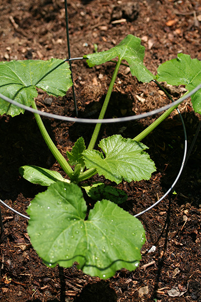 since it was such a hot day, i watered the plants. the biggest drawback of the rain barrels is the slow watering speed. usually we just use the watering can, but to completely water a 4x8 raised bed takes many trips, and each time it takes several minutes to empty a full can. using the traditional hose is so much faster. another way to water with the rain barrel is to connect a hose to the spigot. this only works for the larger plants, because the water then comes out so fast that it's easy to drown the smaller seedlings. the hose also has to be low to the ground, otherwise the force of gravity prevents the rain barrel water from coming out.