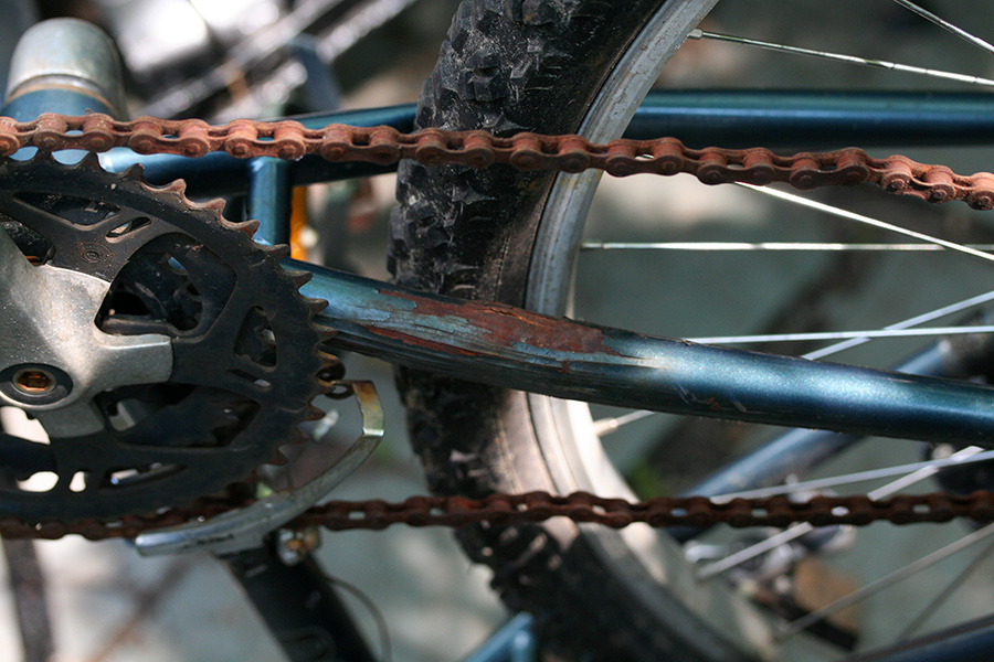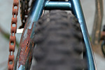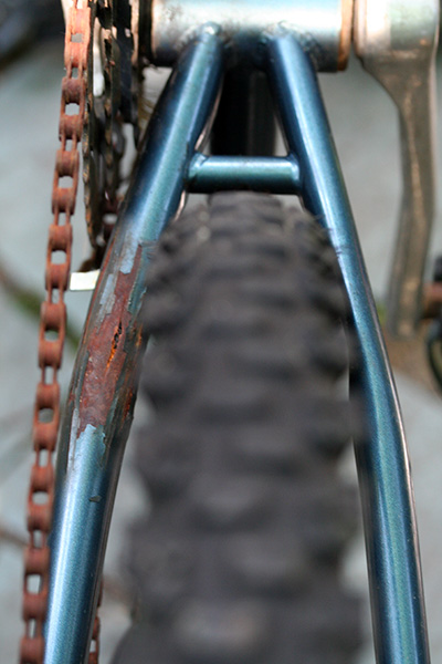 i knew the trek 850 had problems with the chain, but after another inspection i discovered something else: one of the chainstay has a rupture. i'm guessing this happened when water got inside the frame and then froze and expanded. i'd love to ask a bike repair person if there's anything that can be done about it. at this point i'd just wrap it up with duct tape. the frame still seems sturdy enough, and the damage can only be seen from the bottom of the bike.