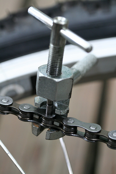 not sure why threading the chain onto the bike took as long as it did. in hindsight, it should've been pretty straightforward, but for some reason i kept tangling up the chain or it'd fall off from the sprockets. finally i got it on, and then joined the two ends with a chain breaker. afterwards i gave the chain a good oiling.