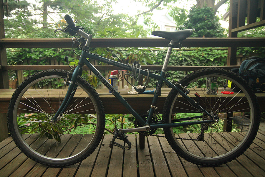 apart from the riding position, the 850 is probably one of the lightest bike i've ever ridden. maybe it's because i don't have a large milk crate attached to the back. it handles pretty smoothly, no rattling in the axles or crank or cassette, no wobbling of the wheels. even though the brakes are aligned and properly spaced, it doesn't brake very well. though the rims are rust free, at one point little pebbles must've gotten caught in the pads and scratched out deep grooves. i think the bike would feel even more responsive if i changed to more street-style tires.