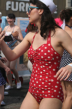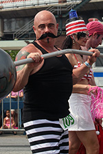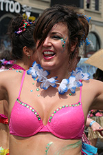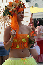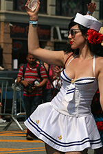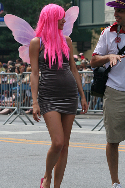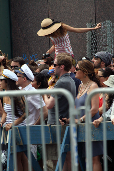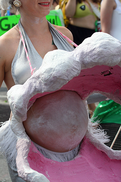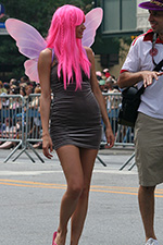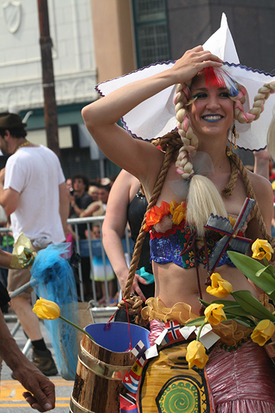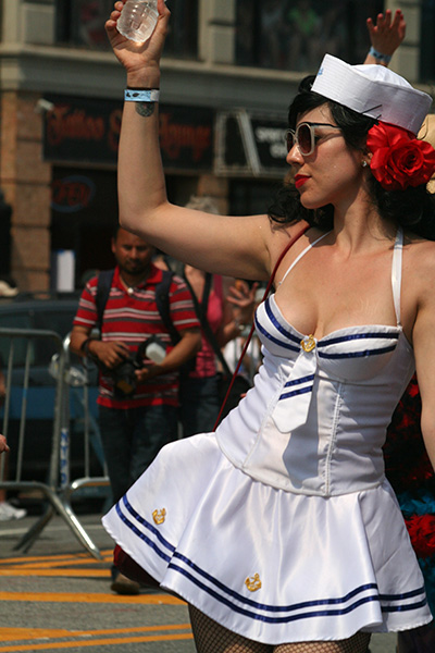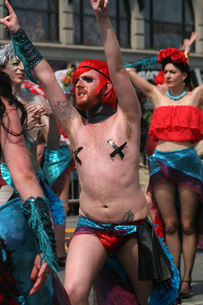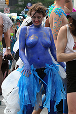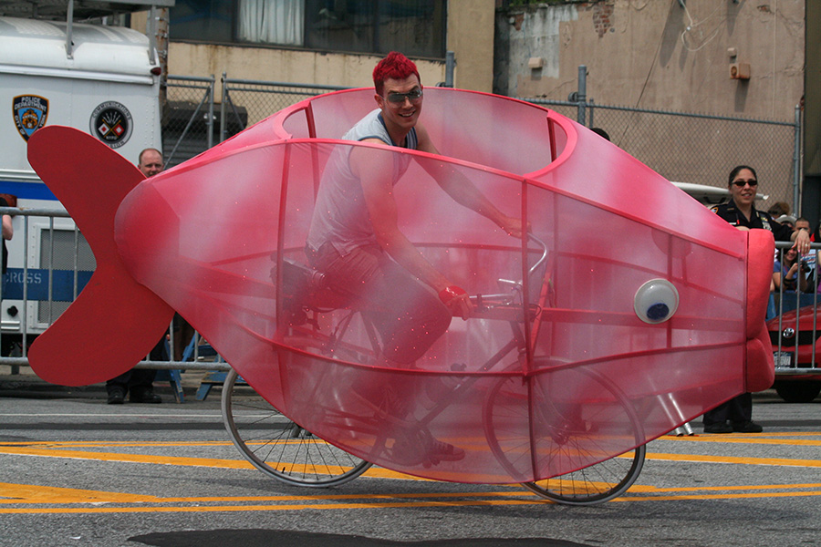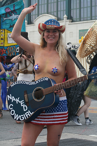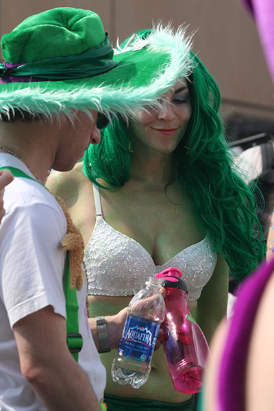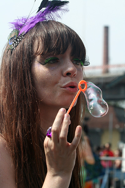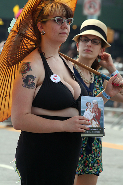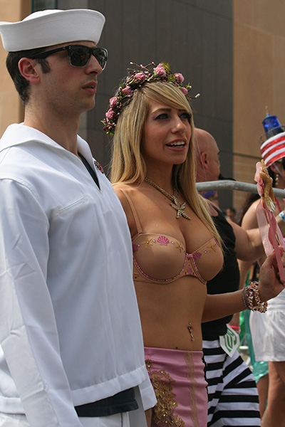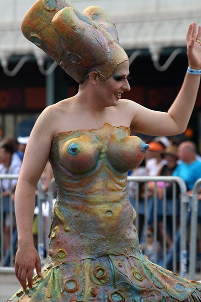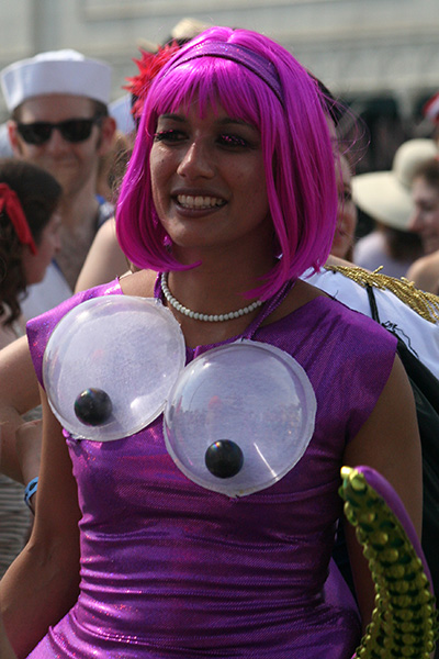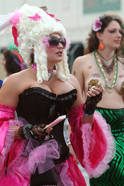 i don't mind the standing (i could always leaning on the barricades) but the heat and the thirst is a different story. weather is always a deciding factor when it comes to parade success, but the mermaid parade works just as well dry or wet. rain is only a pain for photography (and the danger of getting poked in the eye with an umbrella spoke). when it's too hot though, standing on the sideline can be unbearable. today was hot but it wasn't too bad. the sun would come out from time to time, but mostly it was a warm haze, very good for shooting. i kept looking for a rolling refreshment vendor that never came, and i didn't want to step out and go to a store because i didn't want to lose my spot.