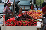 with 15 minutes left we started walking to the fung wah depot. the fruit vendors were still on the streets. huang lei bought a bag of rainier cherries ($5) while i got a bag of regular bing cherries ($5). i was still looking for somebody selling guava when huang lei asked me if we had enough time, which suddenly reminded me we still had a bus to catch. we bought our tickets with 10 minutes to spare. buses going back to boston this time of the day are never crowded so i wasn't worried about not getting a seat.