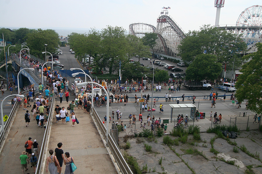 the parade was still ongoing but we decided to head out by around 4:30. it'd take us about an hour to get back to manhattan and we still had some NYC sightseeing to do. by that point it seemed to be mostly a showcase of muscle cars anyway, which for me wasn't all that interesting. we tried to cross at the intersection in front of the coney island train station but the police wouldn't let anyone pass, much to the chagrine of angry new yorkers who nearly rioted. "i got a baby!" one man shouted, somebody screamed, "stop pushing!" huang lei and i quietly slipped out, deciding to go around the parade route instead of across it.