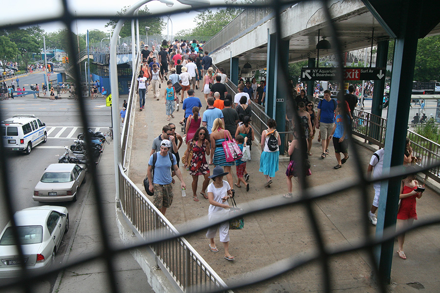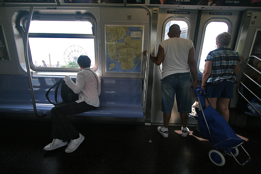 by 11:00 we went to grab the subway from the canal street station. we caught a Q train to coney island, with more than 20 stops in between. the Q is actually one of my favorite trains, with its updating LED station map. it takes a long time (i want to say an hour) but it never feels very long because the train is on the surface for much of the journey and the comings and goings of new yorkers is always a pleasurable source of live entertainment. we arrived around 12:20.