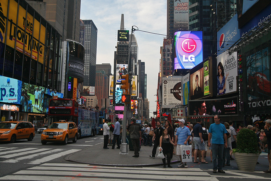 by that point it was 6:40. my original itinerary was to take the train to the flatiron building (23rd street) where we'd then walk 5th avenue north, seeing the empire state building, ending up at grand central (42nd), where we'd also check out the chrysler building, before walking towards time square, followed by rockefeller center and a final stop at central park before returning to chinatown to take the 8:00 fung wah bus. with about an hour left, that was impossible to accomplish. the new plan was to basically head straight to time square, take a look around, and then start heading back.