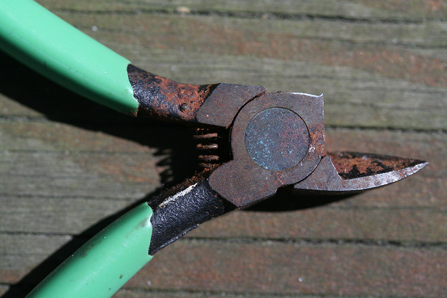 next i moved on to the shifter cables. rusted and frayed, i had to take off the old ones before i could put on the cables. i used an old pair of wirecutter. suddenly i heard a loud snap. i looked down to see the cut was still attached but one of the blades of the cutter had broken off. where the missing piece was i don't know, i'm just lucky it didn't ricochet into my eye like shrapnel. i used another wire cutter that had more power to finally snip the cables. i even managed to stab my hand with a rust piece of frayed wire, as i tried to remember when was the last time i had my tetanus shot (6 years ago i think). i was just replacing the cables and not the housings. i used a spare length of shifter cable and some triflow oil to clean the inside of the housings.