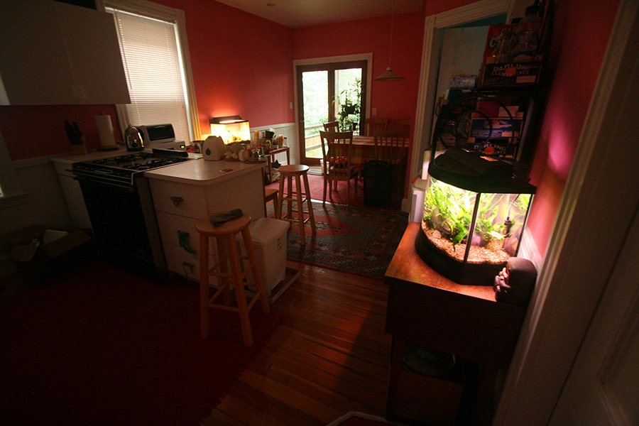since i didn't make a grocery run, i ate the box of toaster oven pizza in the freezer. bram was soaking wet when he came home, the man does not believe in umbrellas. he was considerate enough to leave his wet shoes in the foyer instead of walking into the house with them on. i told him i found his school id when i was drying my clothes. it must've been stuck in the lint trap.
