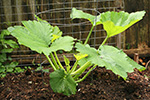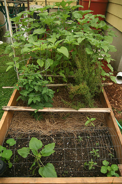 the summer squash is a monster. juiced on a bed of compost and left to grow on its own without any competition, it can only get bigger and bigger. my only concern are the squash vine borers. this squash hasn't flowered yet, so that will at least make it hard for the borers to find it. but already i noticed some early stage flower buds; maybe i should snip them off for a few weeks, until the borer season has past. last year i set out my squashes too early, and was unlucky enough to have the flowering coincide with the few weeks that the borers are out looking to lay eggs.