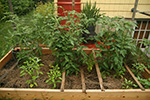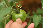 nothing yet on the cherry tomatoes but at least one regular tomato is about the size of a small plum. i'm not much for eating tomatoes but they're fun to grow because their fruits are so accessible. there's no confusing when a tomato is ripe - it turns completely red (typically, unless you have a special variety). and they're easy to remove, just pick them off the vine. and as long as you keep on picking off tomatoes, they'll keep on growing more.
