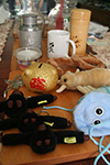 on my way to belmont, there was more trash diving to be had: another neighbor was throwing out a box of stuff as well. one man's junk is another man's treasure. i picked up a few muffin pans, several glass vases, a bunch of giant microbe plush toys, some kipling keychains, a chinese piggy bank, an a tin container full of unused tea.