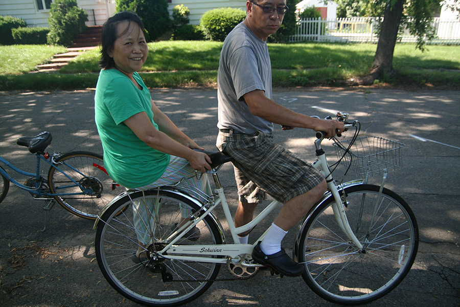 while my father and i were outside test riding the bikes (ross 10-speed, schwinn 7-speed, trek 800), we managed to coax my mother into joining us.2