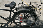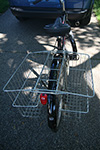 around noontime i met my craig's list seller at the parking lot of the supermarket. patrick was a gregarious older gentleman who lives in the sullivan square area. he was selling a set of rear twin bicycle baskets and a front basket for $30. just so happens my 6 gallon milk crate is about to fall apart so i was looking for a replacement. he came by because he had a car, saving me the trouble of having to go over to his place. both were wald brands; the rear twin baskets were model 535, the largest version wald produces (18 x 7.5 x 12"). brand new they'd sell for around $48. i was dismayed to discover it was probably heavier than my milk crate, but it shouldn't too surprising considered their all steel construction. the front basket was just a bonus; it was one of the smaller wald baskets, model 137 (15 x 10 x 4-3/4", retails for $20). they were in pretty good condition, the braces on the front basket were a little bent, but not too bad.