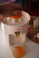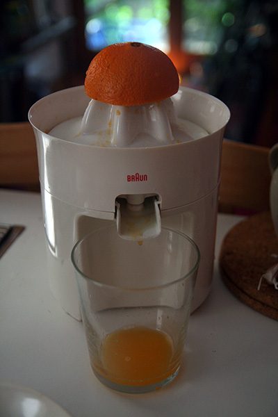 i got a chance this morning to try out the braun citrus juicer. i own a juice press which i never use, and a manual plastic hand juicer for those times when i need a little lime/lemon juice for cooking purposes.
