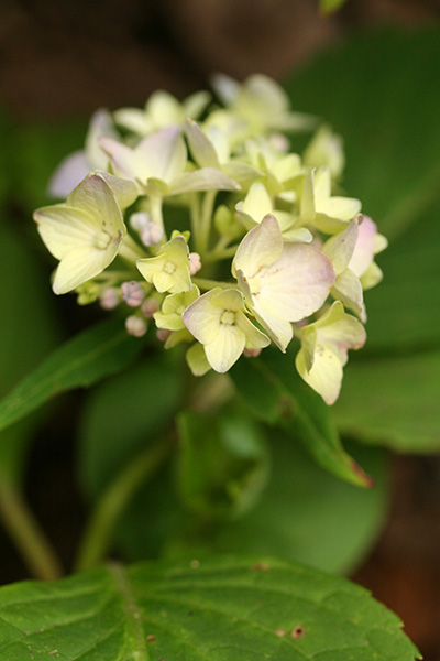 a single purple bell plant has started to bloom (the one with the most sun exposure). the transplanted hydrangea seemed to have survived, despite being mostly stem and a small amount of roots. it didn't look so promising at first, with the plant wilting like it was dead, but ever since i transplanted it 3 weeks ago, it has tenaciously clung to life, to the point where it's showing some colors on the immature blossoms and i might be able to get some more blues in the backyard.