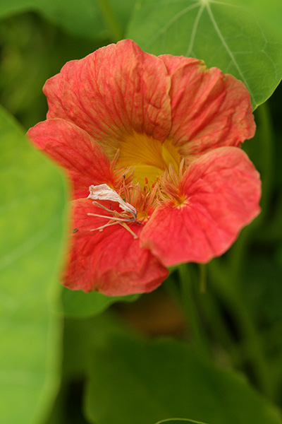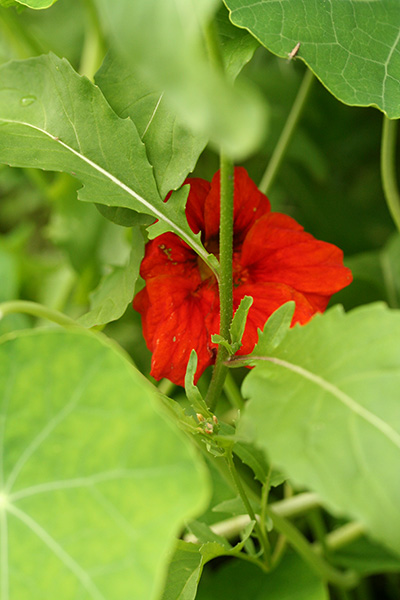 the nasturtiums seem to be lost in the field of bolting and flowering arugula. i know they're there from the colorful flowers. i'm curious to see if in fact the nasturtiums will take over once all the arugula and lettuces have been harvested. they're fast growers to the point of being weedy (a weed i don't mind having in the garden).