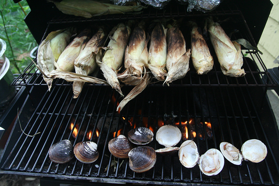 in the evening we had a barbecue. just some hot dogs and corn, and some cherrystone clams. i tried one, it tasted pretty awful, very much of the ocean, fishy and briny. there was also some marinated steaks.