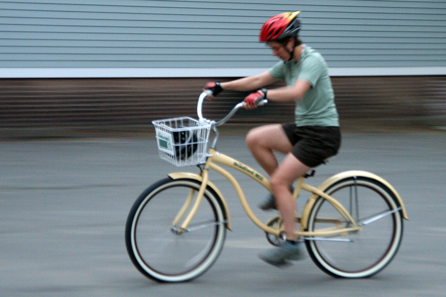 i thought they were schwinns but they're actually firmstrong bella fashionista lady single speed bikes. the handlebars are very wide, reminded me of those lat-pulldown bars at the gym. they all have coaster brakes, which was my first time experiencing them; i rather have hand brakes, since i have a habit of riding backwards which immediately grounds the bike to a halt on coaster brakes.